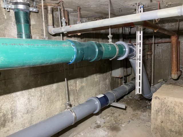 排水立管からピット内排水横主管の更新工事、ならびに浴室トラップおよび屋上通気管の更生工事を実施しました。